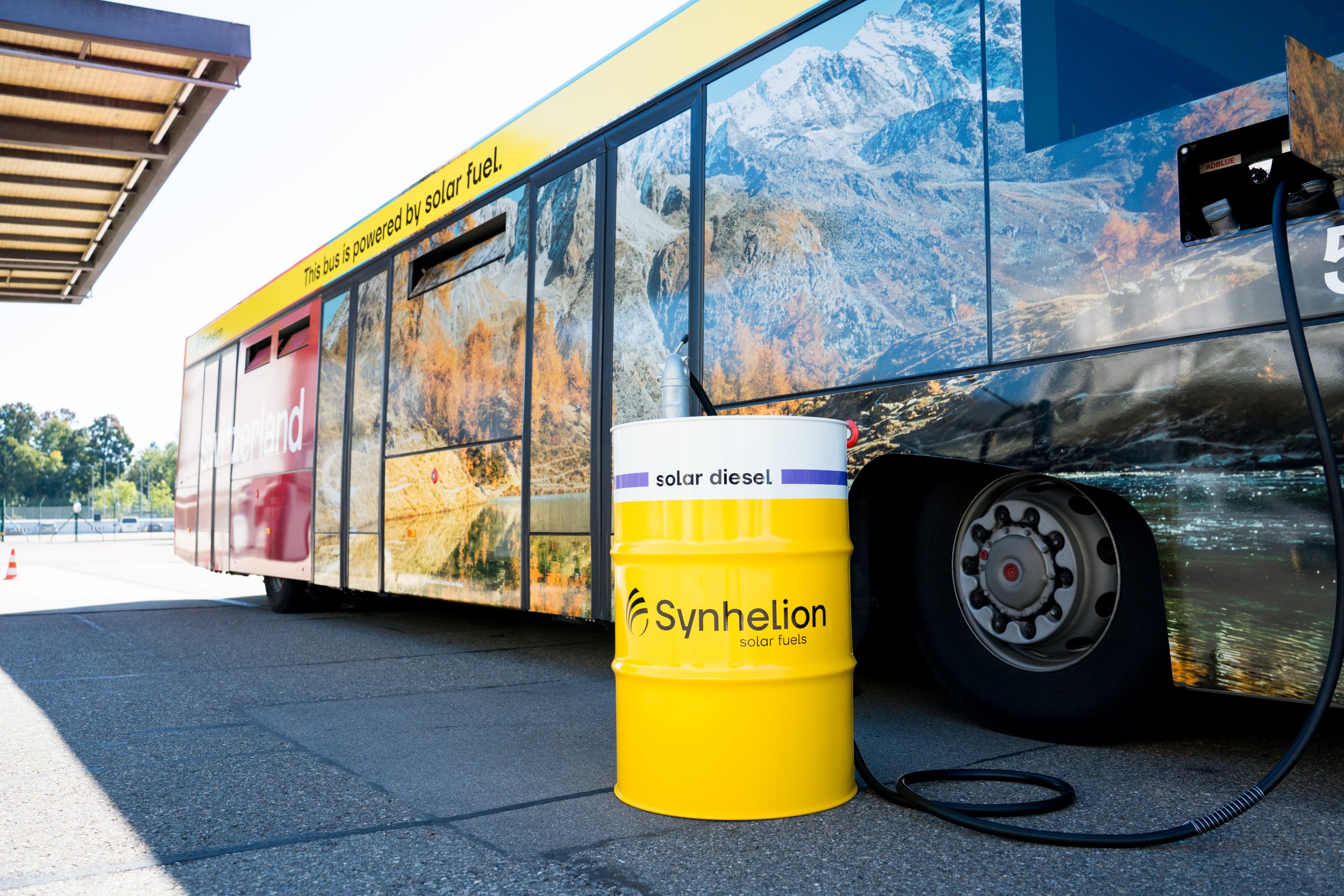 First-ever passenger bus at Zurich Airport fueled with Synhelion’s solar diesel